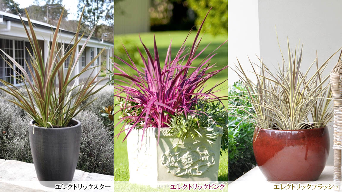 オーストラリス種とは異なり、細めの葉がグラス状に展開し、繊細な美しさがある。草姿は扇状に広がってボリュームができ、3.5~5号程度の仕立てがお勧め。オーストラリス種と比べ耐寒性は少し劣る。